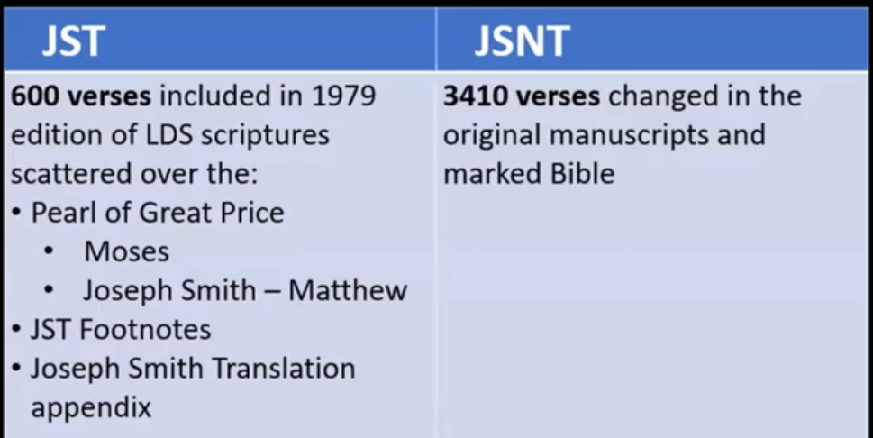Sadly there are some fringe groups within the restoration who are denying the inspiration and revelation of the JST / Inspired Version / New Translation of the Bible. They claim it’s simply Joseph Smith’s way of putting his own ideas into scriptures. If that was so, that would make Joseph Smith a liar and a false prophet, and taking YHWH’s name in vain which is a capital offense. Because Joseph taught, as does YHWH in the D&C, that YHWH Elohim commanded Joseph Smith to do it. I personally believe that the JST / Inspired Version / New Translation of the Bible is what Joseph Smith said it is as YHWH Elohim did in the D&C. As I see it the reason that these fringe groups hate the JST / Inspired Version / New Translation of the Bible, like Brigham Young did, is because it exposes their lies and destroys their craft.