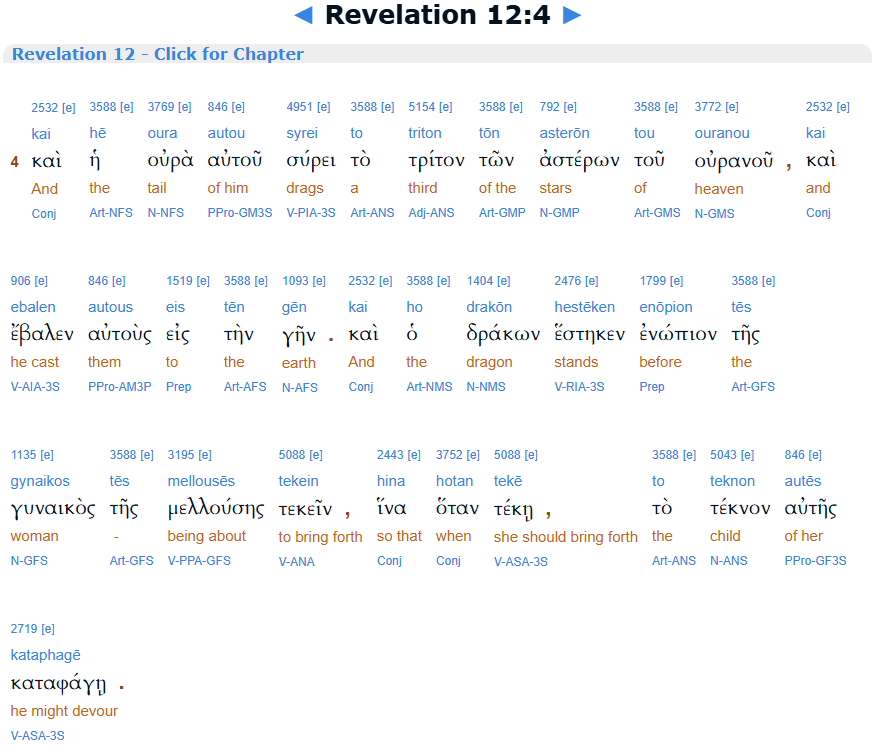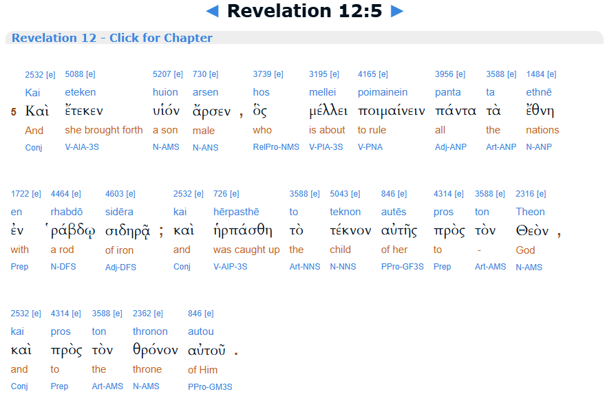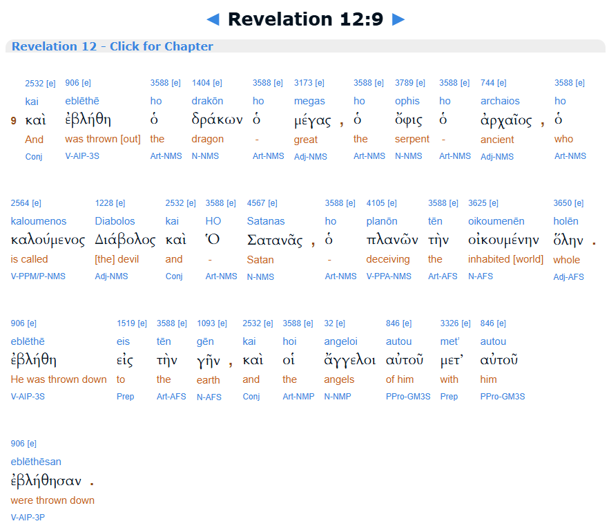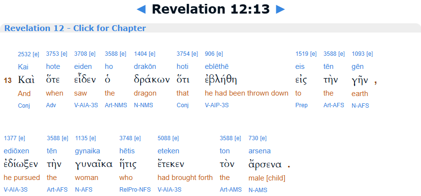 Revelation 12:13, Interlinear, BibleHub