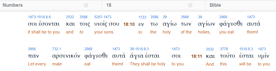 While going through all these verses multiple times along with additional context from the surrounding verses, I have come to the conclusion that “αρσενικόν” means dedicated or set apart. I will go Numbers 18:10 that I believe really brings this out, if you want to go over the other passages feel free to, as other verses demonstrate this also. But first I want to go the Greek word “G0730: άρσεν” which is found in context with verses listed above surrounding “αρσενικόν” which I believe supports my conclusion that “αρσενικόν” means dedicated or set apart. First I want to bring out how it’s fairly obvious that “αρσενικόν” is related to “άρσεν” just from the fact it starts the same and has the Greek suffix “ικόν” see Wiktionary how ικόν” is a suffix. (I hope the fact that the ABP translation from the LXX on BibleHub is point to “G0732: ἄρρωστος: arrotos” is an honest mistake.) On top of that, this goes along how “αρσενικόν” is translated as male as “άρσεν” is loosely defined as. Below is the definition of “G0730: άρσεν” and it’s root “G0142: airó“.