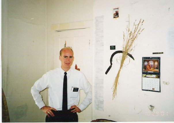 Above is a picture of me on my mission, the sickle from D&C (LDS 4) (RLDS 4) (1833 3) (1835 31) (1844 31) which I still have, the long paper is a copy of a Book of Mormon passage from The Book of Mormon text reformatted according to parallelistic patterns no doubt of Ammon who sought to serve the people and teach them of YHWH ancient ways.
