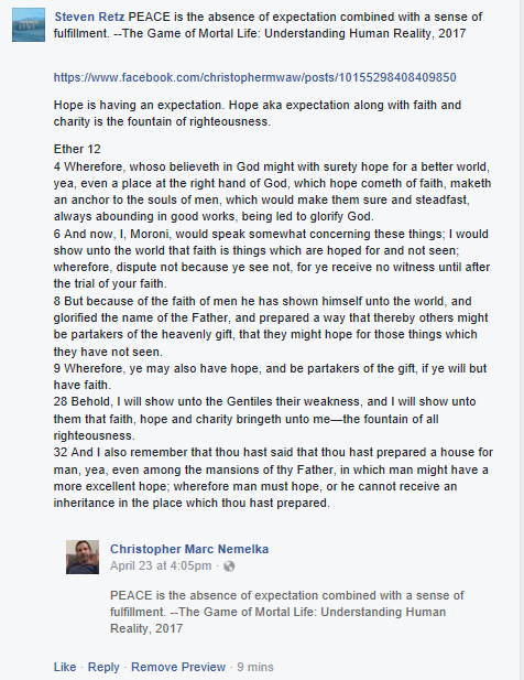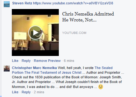 Christopher Nemelka states he does not believe in the Book of Mormon in his Reality Quest.