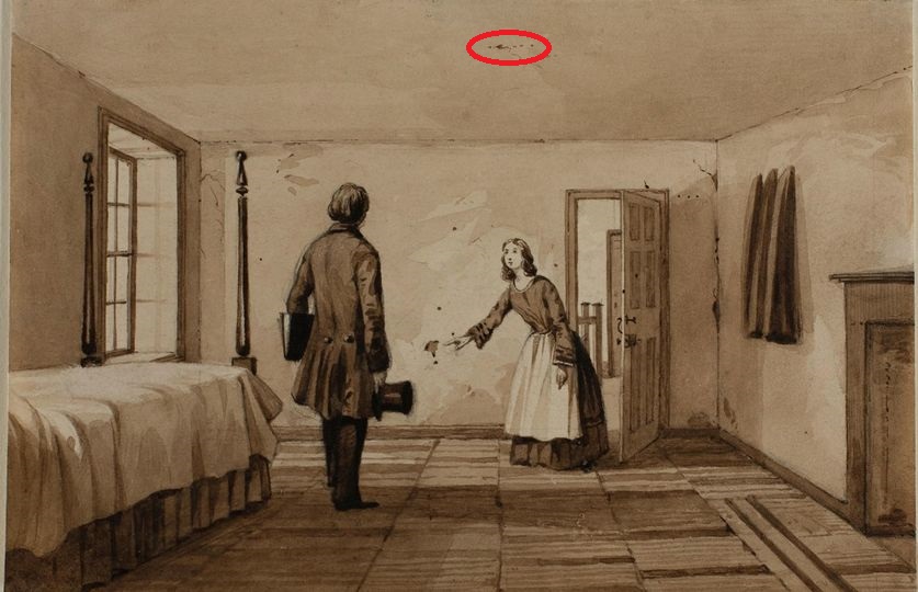 Holes in the ceiling from the shot that killed Hyrum Smith:
