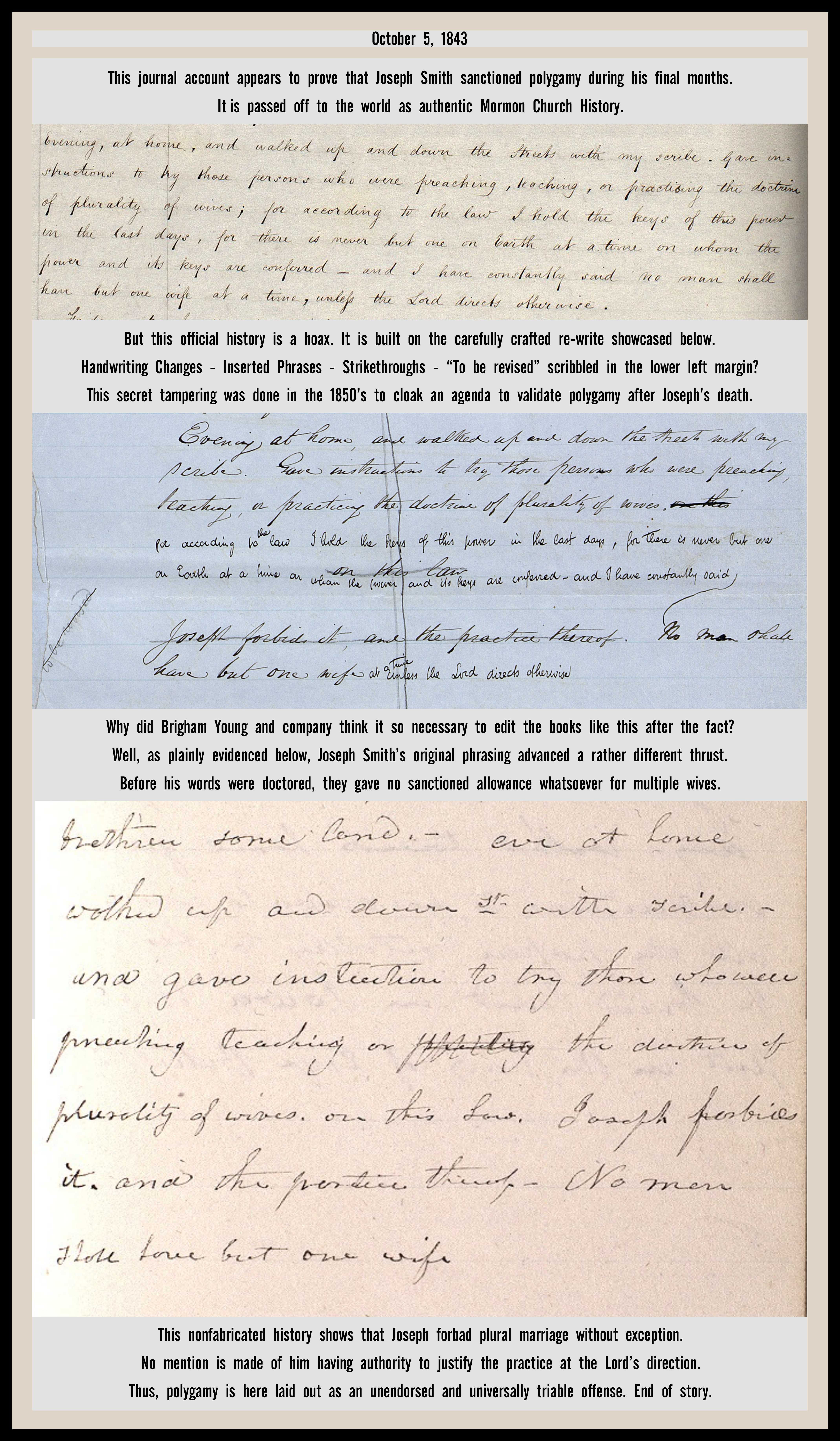 Below is a great screen shot from Hemlock Knots, showing how Brigham Young and the rest of the history revisionist could not make up their minds in how to modify 05 Aug 1843, complete with links so you can see for yourself.